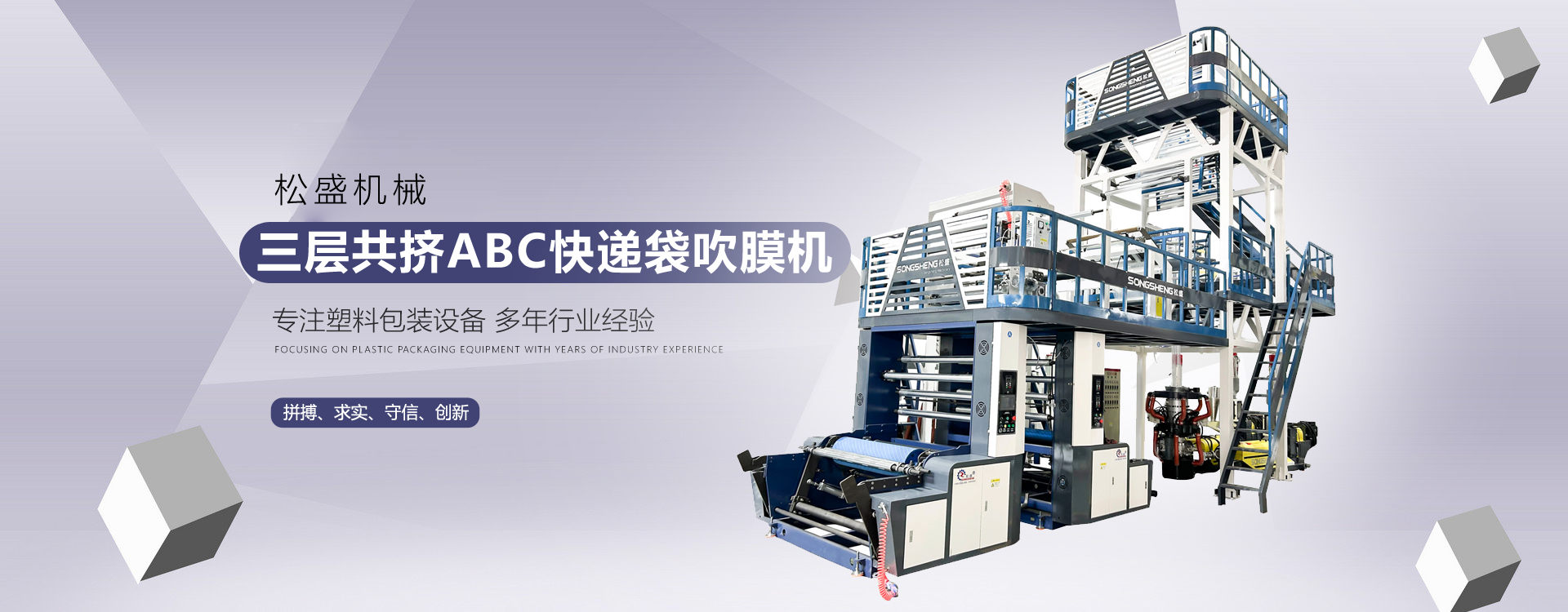 瑞安市松盛機械有限公司,創辦于2008年,位于浙江省瑞安市,是一家主要從事成套塑料包裝設備的企業,主要產品有ABC、ABA、多層共擠吹膜機、全生物降解吹膜機、全自動高速熱切制袋機、以及印刷機、造粒機等。產品遠銷歐美、東南亞、非洲、中東等。市場反應良好,產品深受客戶喜愛。公司秉承“科技創新使企業騰飛”的宗旨,公司研發團隊的不斷對產品改進和提升,先后榮獲國家高新企業、浙江科技型企業稱號,并獲得幾十項國家專利。 卓越的信譽,一流的品質,完好的服務是我們永恒的宗旨和奮斗目標,松盛機械愿與國內外客戶攜手共創美好明天。
